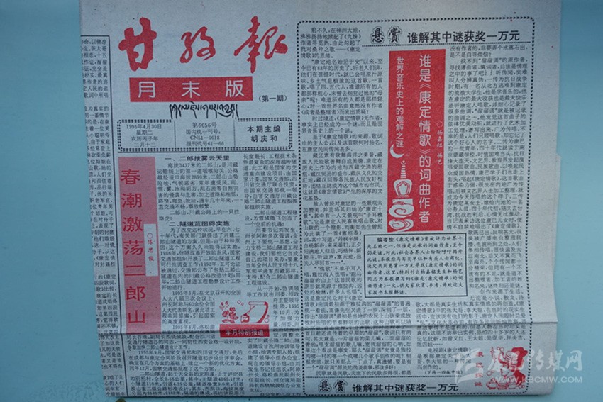 《甘孜報》當(dāng)年刊載尋找《康定情歌》作者一文的第一期(月末版)報紙。