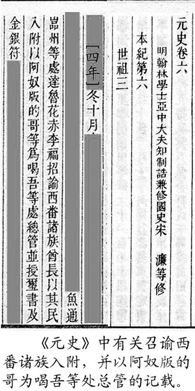 今屬康定縣的木雅,又分為上木雅和下木雅。下木雅的色烏絨地方,是木雅王曾住過的地方之一。民間又稱住在這里的王為“西吳甲布”(即“西吳王”),進(jìn)而又附會(huì)出個(gè)“西吳國(guó)”來。從木雅貢嘎西邊那條叫色烏絨的山溝往南到打箭爐,正如傳說的那樣,早年一般要走三天?!对贰酚小昂任帷钡挠涊d,“喝吾”“色烏”都是藏語的音譯,藏語“絨”為山溝之意,指的就是這個(gè)色烏絨。元世祖忽必烈征滇,沿大渡河、金沙江而進(jìn),得到沿途部落首領(lǐng)的大力支持。長(zhǎng)河(大渡河)西的“西吳王”自然也不例外。所以在至元四年(公元1267年)“冬十月壬戌,魚通巖州等到處達(dá)魯花赤李福,招諭西番諸族酋長(zhǎng)以其民入附,以阿奴版的哥等為喝吾等處總管,并授璽書及金銀符?!钡玫缴w有皇帝大?。ㄓ癍t)文書和金銀符,朝廷正式任命為“喝吾”總管的酋長(zhǎng)(木雅王)阿奴版的哥,之后從色烏絨遷到打煎爐,不僅成為朝廷認(rèn)可的“長(zhǎng)河西土官”,還作了“四川分省右丞”。我們是否可以判定,“木雅王”遷爐的時(shí)間應(yīng)在至元四年(公元1267年)之后?1267年距今740多年,以此推算,如前文所說:今天西爐(康定城)的歷史,大約為700年!再者,若從宋代的“卡拉國(guó)”算起,說“明正”歷四十二代,不能說沒有一點(diǎn)來頭。