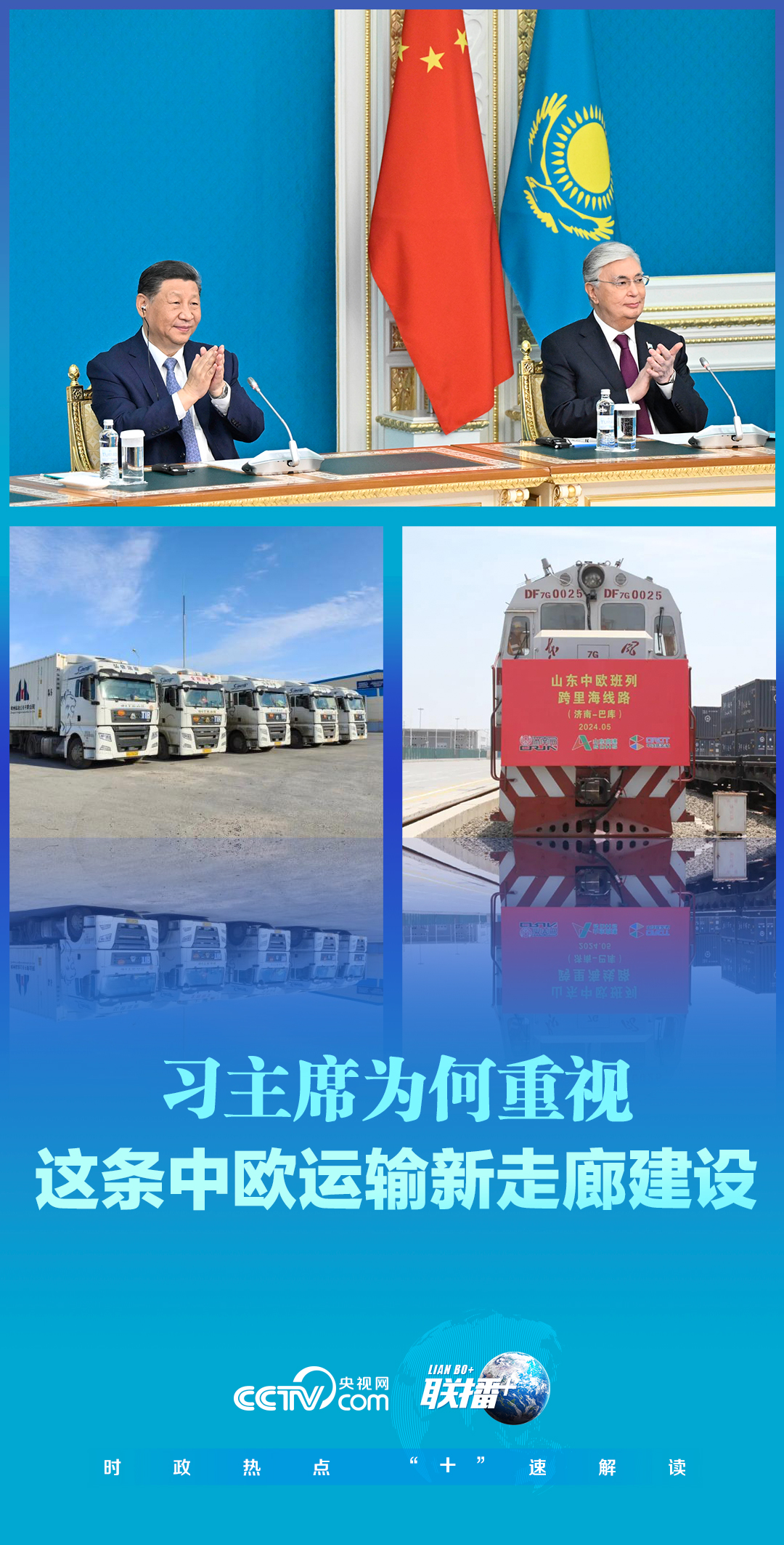 7月3日,正在哈薩克斯坦訪問的習(xí)近平主席同托卡耶夫總統(tǒng)以視頻方式共同出席中歐跨里海直達(dá)快運開通儀式。兩國元首共同下達(dá)作業(yè)指令。