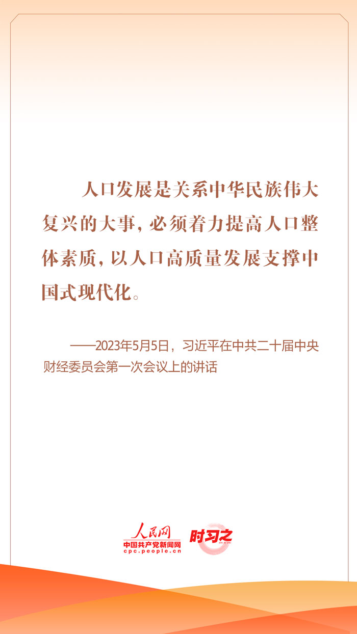人口問題始終是我國(guó)面臨的全局性、長(zhǎng)期性、戰(zhàn)略性問題。習(xí)近平總書記對(duì)人口問題高度重視,強(qiáng)調(diào)“人口發(fā)展是關(guān)系中華民族偉大復(fù)興的大事,必須著力提高人口整體素質(zhì),以人口高質(zhì)量發(fā)展支撐中國(guó)式現(xiàn)代化”。世界人口日到來(lái)之際,一起學(xué)習(xí)領(lǐng)會(huì)習(xí)近平總書記關(guān)于人口工作的重要論述。
