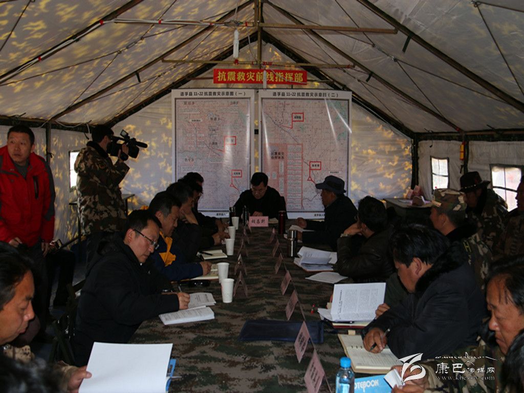 在前線指揮部,胡昌升主持召開前指工作專題會議,傳達(dá)了省委書記王東明和省長魏宏到我州地震災(zāi)區(qū)調(diào)研指示精神,聽取前線指揮部辦公室和營地各單位、康定縣、道孚縣關(guān)于抗震救災(zāi)工作的匯報。