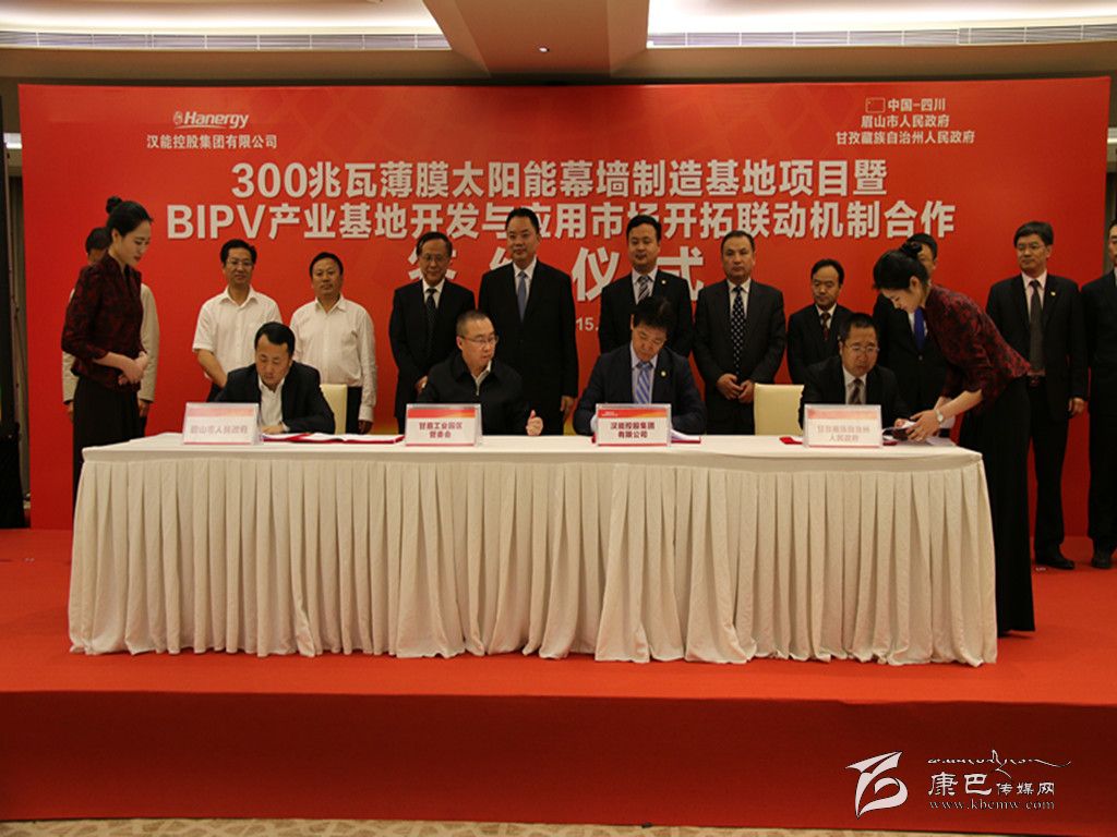 簽約儀式由州委副書記、州政府州長(zhǎng)益西達(dá)瓦主持。眉山市委副書記、市長(zhǎng)宋朝華和漢能控股集團(tuán)執(zhí)行總裁、漢能光伏產(chǎn)業(yè)集團(tuán)董事長(zhǎng)馮電波出席簽約儀式并致辭。州委常委、州政府常務(wù)副州長(zhǎng)陳忠義代表州政府簽約。眉山市委常委宣迅,市委常委、甘眉工業(yè)園區(qū)黨工委第一書記王光彩,市政府副市長(zhǎng)唐宏以及漢能控股集團(tuán)相關(guān)負(fù)責(zé)人、兩市州相關(guān)部門和甘眉工業(yè)園區(qū)負(fù)責(zé)人參加簽約儀式。