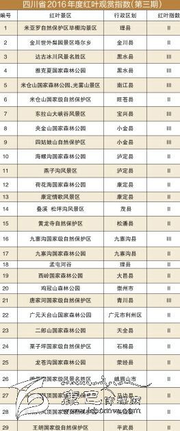 10月26日,四川省林業(yè)廳發(fā)布第三期紅葉觀賞指數(shù),在29個點位中,8個景點達到III級紅葉觀賞指數(shù)。其余點位也都達到2級以上。這意味著,四川所有紅葉觀測點,葉片變色率都超過了35%,四川迎來2016年最佳紅葉觀賞期。