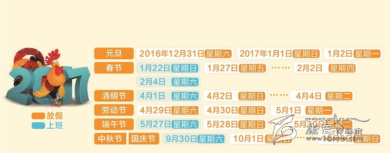 經(jīng)國務(wù)院批準(zhǔn),現(xiàn)將2017年元旦、春節(jié)、清明節(jié)、勞動(dòng)節(jié)、端午節(jié)、中秋節(jié)和國慶節(jié)放假調(diào)休日期的具體安排通知如下。