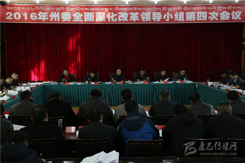 本網(wǎng)訊(記者 楊杰 文/圖)12月14日上午,州委書記劉成鳴在爐霍縣主持召開2016年州委全面深化改革領(lǐng)導(dǎo)小組第四次會(huì)議,學(xué)習(xí)傳達(dá)中央深化改革領(lǐng)導(dǎo)小組和省委深化改革領(lǐng)導(dǎo)小組相關(guān)會(huì)議精神,審議《甘孜州創(chuàng)新企事業(yè)單位民主管理制度改革方案》、《關(guān)于深化人才發(fā)展體制機(jī)制改革促進(jìn)全面創(chuàng)新改革驅(qū)動(dòng)轉(zhuǎn)型發(fā)展的實(shí)施意見》等8個(gè)專項(xiàng)改革方案。