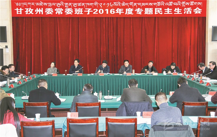 本網(wǎng)訊(記者 楊杰 文/圖)11日下午,州委常委班子召開2016年度民主生活會。會議深入學(xué)習(xí)貫徹黨的十八屆六中全會、省委十屆九次全會,圍繞“兩學(xué)一做”學(xué)習(xí)教育,重點對照中央《關(guān)于新形勢下黨內(nèi)政治生活的若干準(zhǔn)則》《中國共產(chǎn)黨黨內(nèi)監(jiān)督條例》和省委《關(guān)于加強和規(guī)范黨內(nèi)政治生活嚴(yán)格黨內(nèi)監(jiān)督鞏固發(fā)展良好政治生態(tài)的決定》,結(jié)合實際進行黨性分析,開展批評和自我批評。會議旨在讓州委常委班子成員從思想、組織、作風(fēng)、紀(jì)律等方面查找存在的突出問題,逐一抓好整改落實,切實從思想和靈魂深處經(jīng)受一次深刻的洗禮和教育,以更加優(yōu)良的作風(fēng)、更加扎實的工作,展現(xiàn)新一屆班子的新形象,為決戰(zhàn)脫貧攻堅、決勝全面小康,建設(shè)美麗生態(tài)和諧小康甘孜奠定良好的政治基礎(chǔ)。