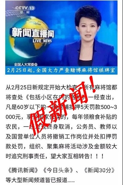 據(jù)介紹,“25日起全國嚴查棋牌室”的謠言最早出現(xiàn)在2014年,在此后幾年中,這條謠言改頭換面又反復出現(xiàn),而且出現(xiàn)的時間也有了規(guī)律,比如每年的5月1日(勞動節(jié)長假)前、9月1日(開學)前、10月1日(國慶長假)前等。