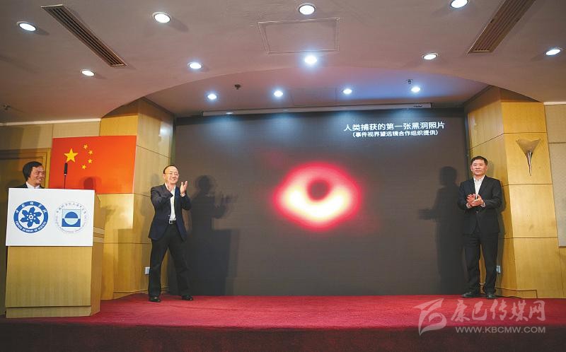 4月10日,中國科學(xué)院上海天文臺(tái)舉行新聞發(fā)布會(huì),為人類史上首張黑洞照片揭幕。新華社記者 金立旺 攝
