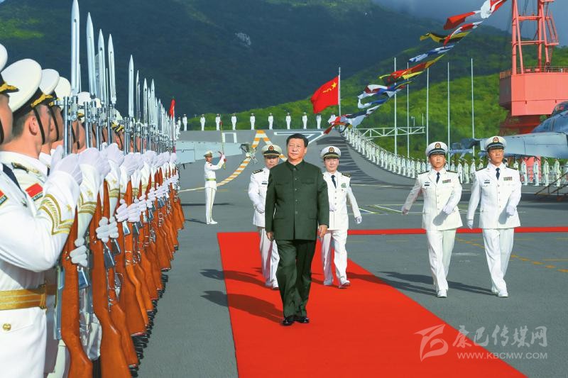 我國第一艘國產(chǎn)航空母艦山東艦17日下午在海南三亞某軍港交付海軍。中共中央總書記、國家主席、中央軍委主席習近平出席交接入列儀式。