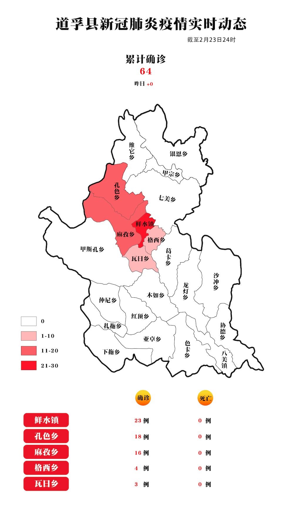 累計確診病例中:5人有武漢旅居史,1人從雅安返回,2人從成都返回,1人從西藏返回、60人為道孚縣常住人口。尚在接受隔離醫(yī)學觀察的密切接觸者336人。