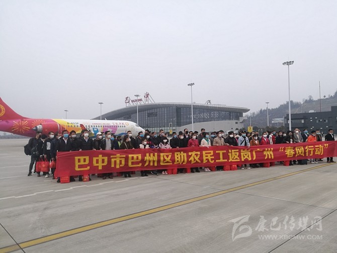 2月26日,巴中恩陽機場首班農民工返崗包機飛赴廣州。