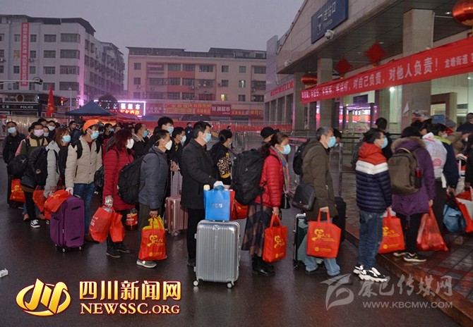 “各位鄉(xiāng)友,你們奔赴工作崗位,是對家鄉(xiāng)經(jīng)濟發(fā)展的貢獻,希望大家到崗之后,嚴格遵守當?shù)氐囊咔榉揽匾?guī)定,加強自我保護,注意勞逸結合,做到工作快樂、身體健康……”當天早上7點過,廣安火車站候車大廳內,暖意濃濃,短暫的歡送儀式上,廣安市委書記李建勤的一句句深情問候讓在場眾人倍感溫暖。