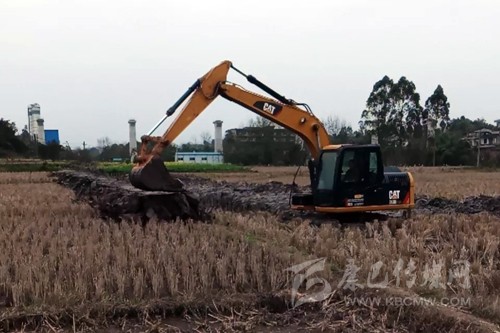 全國產(chǎn)糧大縣井研縣三江鎮(zhèn)石廟村高標準農田建設的施工現(xiàn)場。