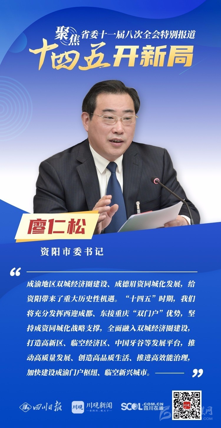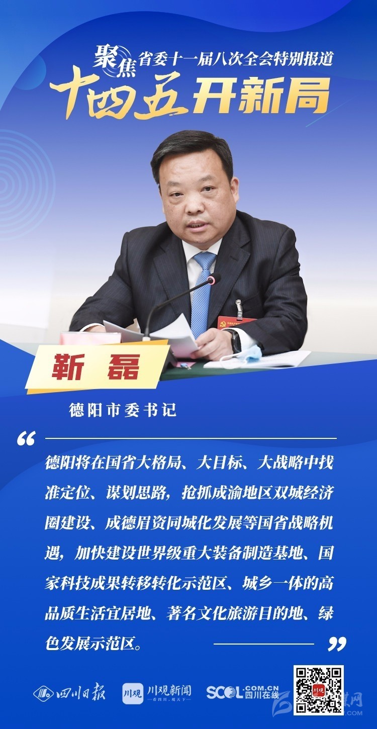 12月3日,中共四川省委十一屆八次全會(huì)在成都開幕,全會(huì)將深入學(xué)習(xí)貫徹黨的十九屆五中全會(huì)精神,審議《中共四川省委關(guān)于制定四川省國(guó)民經(jīng)濟(jì)和社會(huì)發(fā)展第十四個(gè)五年規(guī)劃和二〇三五年遠(yuǎn)景目標(biāo)的建議(討論稿)》,為未來(lái)5年乃至更長(zhǎng)時(shí)期四川發(fā)展謀劃新藍(lán)圖 。