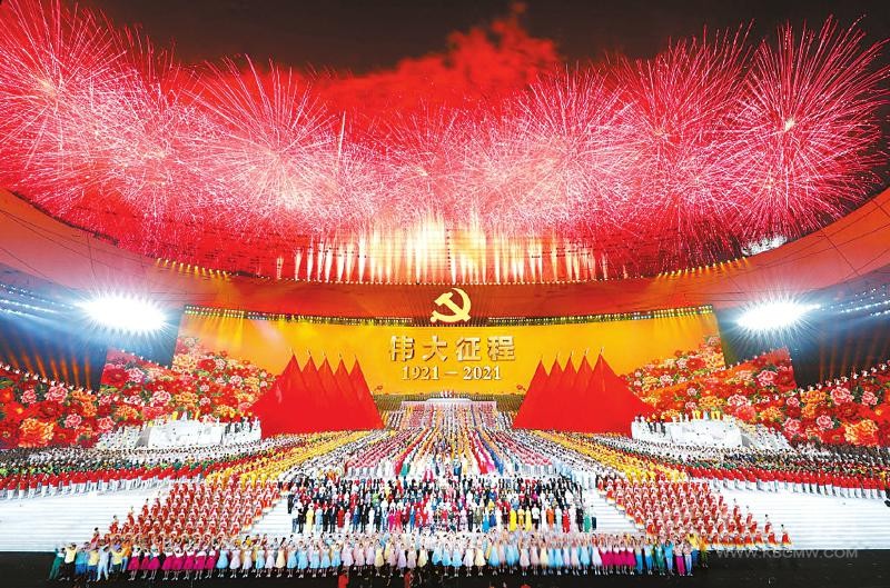 6月28日晚,北京,國家體育場燈光璀璨、人聲鼎沸。習(xí)近平等黨和國家領(lǐng)導(dǎo)人同約2萬名觀眾一起觀看文藝演出《偉大征程》,共同慶祝中國共產(chǎn)黨成立100周年。