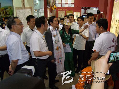 視察中,劉奇葆興致勃勃地觀看了我州文化形象展示大屏幕和非物質(zhì)文化遺產(chǎn)展示、土特產(chǎn)品及民間工藝品。他來到藏文書法、藏族噶瑪嘎孜畫派、藏族藥泥面具制作技藝等非物質(zhì)文化遺產(chǎn)項(xiàng)目和土特產(chǎn)品展品前,仔細(xì)詢問這些藝術(shù)品的生產(chǎn)工藝、制作流程等情況后,對(duì)我州深厚的文化底蘊(yùn)和豐富的旅游資源連連稱贊,殷切希望甘孜州傳承好歷史文化,發(fā)揮好民間藝術(shù)非遺項(xiàng)目,走文化