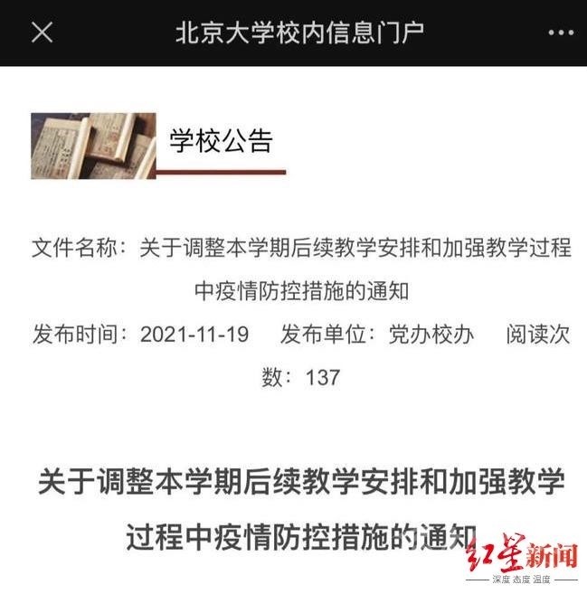 除了就地過年的倡議,紅星新聞?dòng)浾咭舶l(fā)現(xiàn),不少高校也開始了提前放假。北京部分高校發(fā)布通知,調(diào)整2021至2022學(xué)年秋季學(xué)期期末考試及寒假安排。包括北京大學(xué)、中國人民大學(xué)、北京物資學(xué)院等高校均發(fā)出了提前放寒假安排。