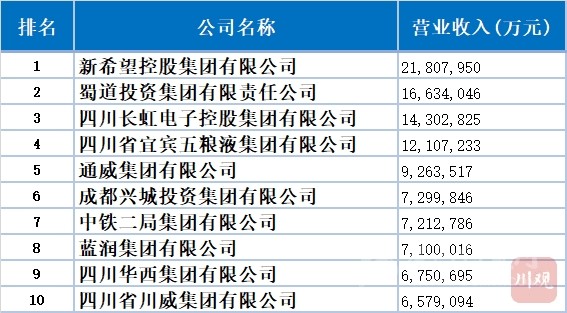 先來(lái)看看2021年四川企業(yè)100強(qiáng)前10名:
