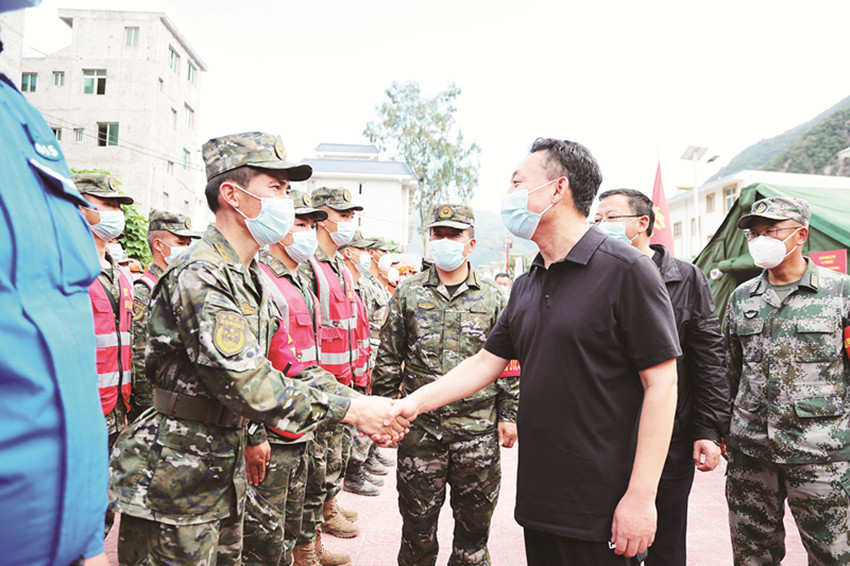 沈陽來到“9·5”瀘定縣6.8級(jí)地震抗震救災(zāi)前線指揮部,看望值班值守干部和醫(yī)務(wù)人員、地震專家、搶通保暢隊(duì)伍。他說,這次地震既檢驗(yàn)了我們的應(yīng)急救援體系和能力水平,也是對(duì)各級(jí)黨組織和廣大黨員干部的巨大考驗(yàn)。地震發(fā)生后,前線指揮部統(tǒng)籌調(diào)度、高效運(yùn)轉(zhuǎn),各條戰(zhàn)線沖鋒陷陣、攻堅(jiān)克難,確保了抗震救災(zāi)各項(xiàng)工作有力有序開展,彰顯了甘孜精神、甘孜速度、甘孜力量。當(dāng)前,抗震救災(zāi)仍處在關(guān)鍵時(shí)期,希望大家堅(jiān)持人民至上、生命至上,咬緊牙關(guān)、繼續(xù)奮戰(zhàn),團(tuán)結(jié)組織廣大干部群眾努力打贏抗震救災(zāi)這場(chǎng)硬仗。在看望省消防救援總隊(duì)、省森林消防總隊(duì)、解放軍陸軍勤務(wù)支援某旅、武警四川總隊(duì)機(jī)動(dòng)第二支隊(duì)、特警支隊(duì)、安能集團(tuán)和兄弟市州救援隊(duì)伍時(shí),沈陽說,一方有難、八方支援,面對(duì)突發(fā)自然災(zāi)害,各方救援力量火速馳援,不畏艱險(xiǎn)、不怕犧牲,戰(zhàn)山關(guān)、渡激流,水陸空齊發(fā)力,爭(zhēng)分奪秒搶救生命,一幅幅逆向而行的搶險(xiǎn)畫面,一個(gè)個(gè)“飛奪瀘定橋式救援”的英雄身影,深刻詮釋了中華民族守望相助、和衷共濟(jì)的血脈親情,康巴兒女永遠(yuǎn)感恩、銘記于心。