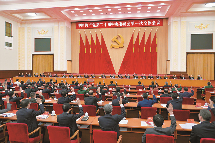 10月23日,中國共產(chǎn)黨第二十屆中央委員會第一次全體會議在北京人民大會堂舉行。 新華社記者 李濤 攝