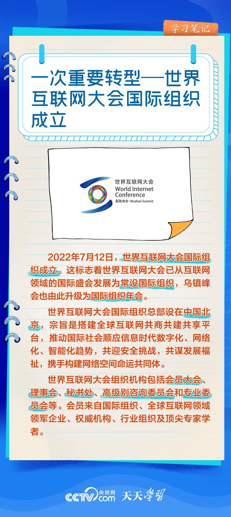 前九屆世界互聯(lián)網(wǎng)大會(huì),習(xí)近平主席或親臨現(xiàn)場(chǎng)發(fā)表主旨演講,或視頻致辭,或向大會(huì)發(fā)來賀信,以不同形式關(guān)心大會(huì)舉辦。央視網(wǎng)《天天學(xué)習(xí)》欄目推出學(xué)習(xí)筆記,與您一起了解世界互聯(lián)網(wǎng)大會(huì)的十年“網(wǎng)”事。