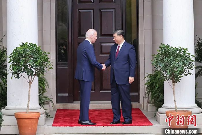 當(dāng)?shù)貢r間11月15日,中國國家主席習(xí)近平在美國舊金山斐洛里莊園同美國總統(tǒng)拜登舉行中美元首會晤。中新社記者 盛佳鵬 攝