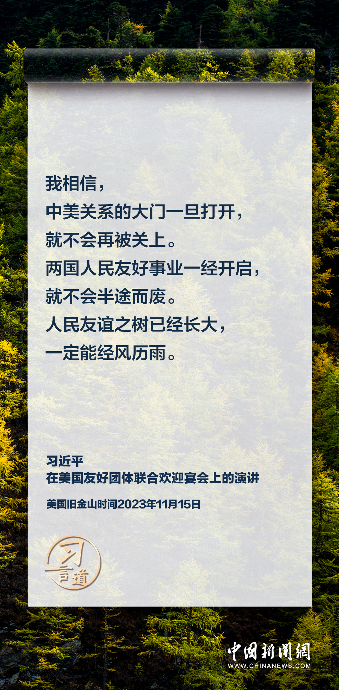 當地時間11月15日,中國國家主席習近平在美國舊金山出席美國友好團體聯合歡迎宴會并發(fā)表演講。習近平在演講中從“我”和“我們”說起,提出中國主張、表明中國立場、展現大國擔當,話語擲地有聲。