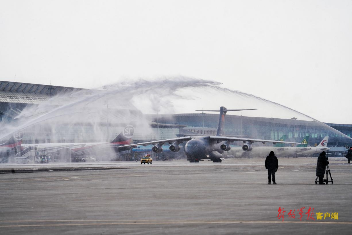 運(yùn)-20專(zhuān)機(jī)通過(guò)“水門(mén)”。中國(guó)軍網(wǎng)記者劉丹 攝