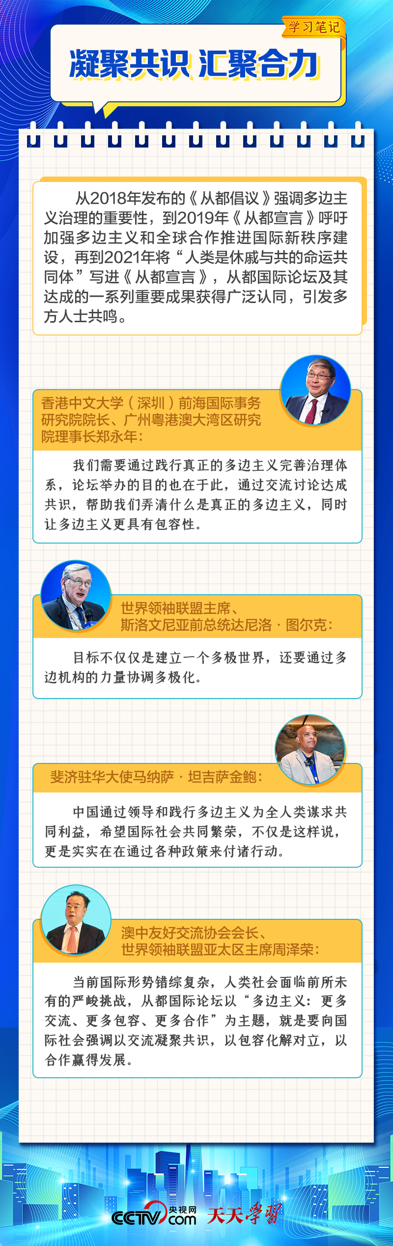 作為加深理解、推進(jìn)共識(shí)、合作共贏的國際高端交流平臺(tái),從都國際論壇自2014年創(chuàng)設(shè)以來,已舉辦八屆。多年來,從都國際論壇不僅成為了一扇觀察和感知當(dāng)代中國的窗口,更為完善全球治理貢獻(xiàn)了智慧和力量。在踐行真正的多邊主義實(shí)踐中,中國與世界相向而行,共進(jìn)共贏。
