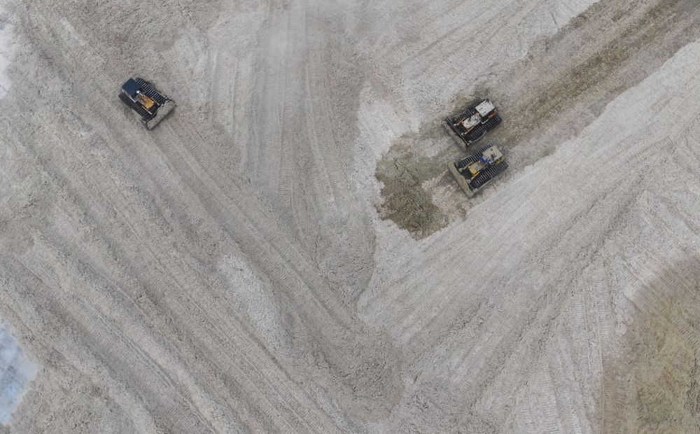 12月12日,在廣西湘桂華糖制糖集團(tuán)來(lái)賓紙業(yè)有限責(zé)任公司,工作人員在整理蔗渣(無(wú)人機(jī)照片)。