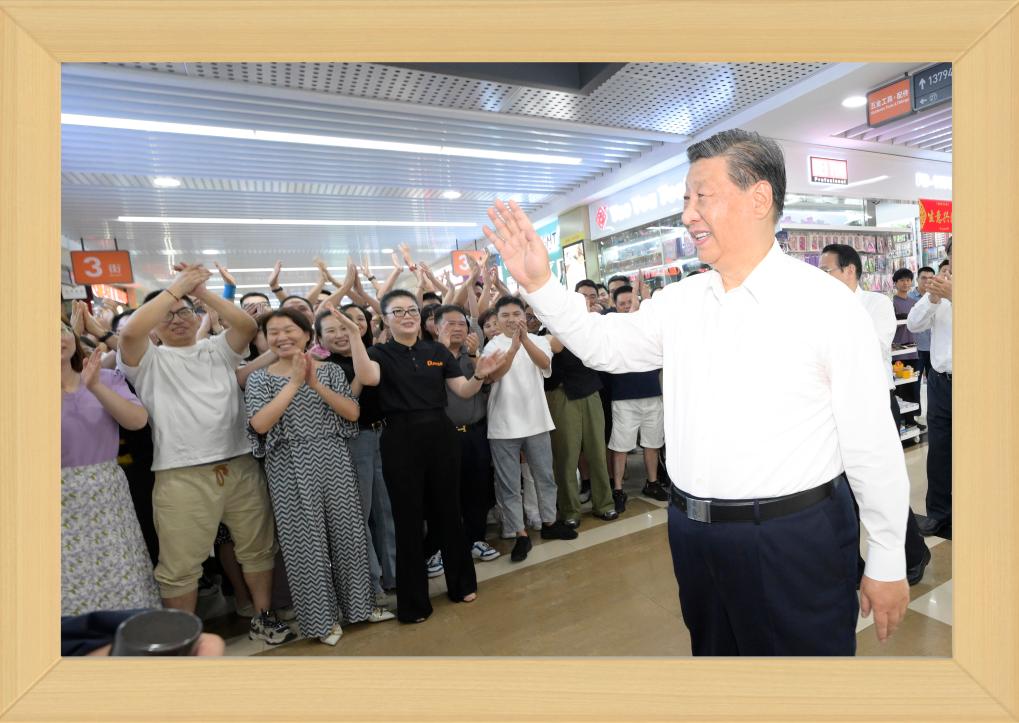 12月31日晚,國家主席習近平發(fā)表二〇二四年新年賀詞。 推近、定格、銘記,透過總書記身后書架上的一張張照片,我們記住過去,也對未來充滿信心。 不變的情懷 幾張老照片,在書架上擺放多年,人們已經(jīng)非常熟悉。 習近平同志青年時期的軍裝照,連續(xù)第3年出現(xiàn),擺放在書架醒目位置。 這令人不由得想起10年前的一段暖心對話—— 2013年11月,湖南十八洞村,村民石拔三老人見到了來此考察的習近平總書記。 “怎么稱呼您?”“我是人民的勤務(wù)員?!?/p> 歲月流轉(zhuǎn),初心不改。從照片上的青年,到人民的勤務(wù)員,“我將無我,不負人民”的赤子情懷始終如一。 家庭是個人溫馨的港灣。習近平同志一家三口和父親習仲勛在一起、習近平同志在福州時帶女兒玩的照片,自總書記第一次發(fā)表新年賀詞以來,就一直擺在書架上。 2023年,又有幾張新的總書記家庭照片映入眼簾。 一張是習仲勛同志的單人照。 2023年是習仲勛同志誕辰110周年。習近平總書記從小深受父親影響,形容父親“像一頭老黃牛,為中國人民默默地耕耘著”,“這也激勵著我將自己的畢生精力投入到為人民群眾服務(wù)的事業(yè)中,報效養(yǎng)育我的錦繡中華和父老鄉(xiāng)親”。 同夫人彭麗媛在深圳錦繡中華景區(qū)的留影、習近平夫婦懷抱女兒的合影,也是第一次出現(xiàn)在書架上。 天下之本在家。習近平總書記指出,家庭和睦則社會安定,家庭幸福則社會祥和,家庭文明則社會文明。 修身、齊家,家好、國更好。習近平總書記率先垂范,對家人的責任、對家風的傳承、對家教的認真令人動容。 不停的步履 11張2023年拍攝的照片,留下習近平總書記過去一年治國理政的經(jīng)典瞬間。 2023年,習近平總書記共進行了16次國內(nèi)考察,出訪4次,在國內(nèi)數(shù)十次會晤到訪的各國各界人士。 將鏡頭拉遠,總書記的身影不辭萬里—— 向南,習近平總書記來到位于我國大陸最南端的廣東省湛江市徐聞縣;向北,考察中國最北端的黑龍江省漠河市北極村;向西,視頻連線守衛(wèi)祖國西大門的新疆軍區(qū)紅其拉甫邊防連執(zhí)勤哨所。 這張同紅其拉甫邊防連執(zhí)勤哨所等進行視頻通話的拼版照片,正是書架上的新照片之一。 “黃河九曲、長江奔流,總讓人心潮澎湃、豪情滿懷。”2023年,長江流經(jīng)的11個省市里,習近平總書記考察了4個;黃河沿線的9個省區(qū)里,考察了5個;大運河涉及的8個省市里,考察了5個。 北瀕長江、南臨廬山、東枕鄱湖,江西九江的中國石化九江分公司位置特殊。10月,習近平總書記來到這里時,員工們圍攏過來紛紛向總書記問好。 總書記親切地說,希望你們按照黨中央對新型工業(yè)化的部署要求,堅持綠色、智能方向,扎扎實實、奮發(fā)進取,為保障國家能源安全、推動石化工業(yè)高質(zhì)量發(fā)展作出新貢獻。 “追求卓越 勇創(chuàng)一流”——墻上的標語仿佛大家的回應(yīng)。這一幕,也被相機定格。 將鏡頭推近,總書記的關(guān)切無微不至—— 這是對生產(chǎn)的關(guān)心。 萬畝甘蔗林中,習近平總書記同身著民族服裝的蔗農(nóng)走在一起,大家的笑容像甘蔗一樣甜??倳洝盀楸U蠂姨菢I(yè)安全、促進蔗農(nóng)增收致富發(fā)揮更大作用”的叮嚀深入人心。 古老荔枝樹下,總書記同現(xiàn)場技術(shù)人員親切交流,指出要著力做好“土特產(chǎn)”文章,以產(chǎn)業(yè)振興促進鄉(xiāng)村全面振興。 這是對企業(yè)的關(guān)注。 9月,習近平總書記來到浙江義烏國際商貿(mào)城考察,人們紛紛從商鋪中走出來,掌聲、問候聲、歡呼聲此起彼伏。 面對商戶、小企業(yè)主們,總書記點贊道:“義烏小商品闖出了大市場、做成了大產(chǎn)業(yè),走到這一步很了不起,每個人都是參與者、建設(shè)者、貢獻者?!?/p> 這是對人民的關(guān)懷。 2023年,華北、黃淮等地出現(xiàn)極端降雨,引發(fā)洪澇和地質(zhì)災(zāi)害。 北方入冬之際,習近平總書記來到北京、河北受災(zāi)較重的相關(guān)地區(qū),看望慰問受災(zāi)群眾。書架上這張照片,便是總書記在北京門頭溝妙峰山鎮(zhèn)水峪嘴村考察時留下的。 一度被洪水淹沒的水峪嘴村已經(jīng)修葺一新,村民家中窗明幾凈、暖氣充足。 少年兒童的成長,習近平總書記一直牽掛在心,書架上多次出現(xiàn)總書記同孩子們在一起的場景。 2023年精選的,是一張習近平總書記在北京育英學校的照片。 看到孩子們正在學生農(nóng)場勞動,總書記關(guān)心地說:“希望同學們從‘學農(nóng)’中感受到農(nóng)作的艱辛和農(nóng)民的不易,從小養(yǎng)成熱愛勞動、珍愛糧食、尊重自然的良好習慣,為建設(shè)美麗中國作貢獻?!?/p> 不竭的力量 國徽高懸,熠熠生輝。這是一個歷史性的瞬間。 2023年3月10日,北京人民大會堂。全票當選國家主席、中央軍委主席的習近平,左手撫按《中華人民共和國憲法》,右手舉拳,面向近3000名全國人大代表,鄭重宣誓。 錚錚誓言,響徹人民大會堂,回蕩在960萬平方公里土地上,回蕩在億萬中華兒女心中。 重溫激動人心的一刻,我們信心十足、精神百倍。 信心,來自堅強的領(lǐng)導(dǎo)核心—— 書架上,擺放著習近平總書記在內(nèi)蒙古自治區(qū)巴彥淖爾市臨河區(qū)國營新華林場考察時的一張照片。 走進正在治理的沙地,總書記感慨:“ 像‘三北’防護林體系建設(shè)