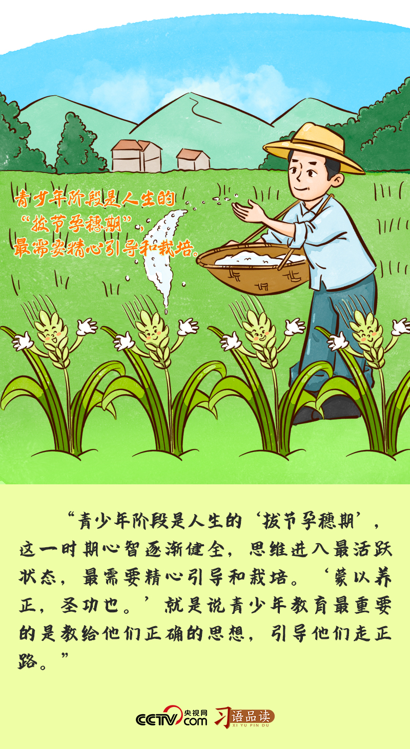 “拔節(jié)孕穗期”是禾谷類作物汲取養(yǎng)分、生長發(fā)育最快的階段,也是決定這一年收成多少的重要時(shí)期,需要農(nóng)人精心照料。處在人生“拔節(jié)孕穗期”的青少年階段,也是一個(gè)人一生中世界觀、人生觀、價(jià)值觀打底塑形的關(guān)鍵時(shí)期,正確的引導(dǎo)和悉心栽培至關(guān)重要。
