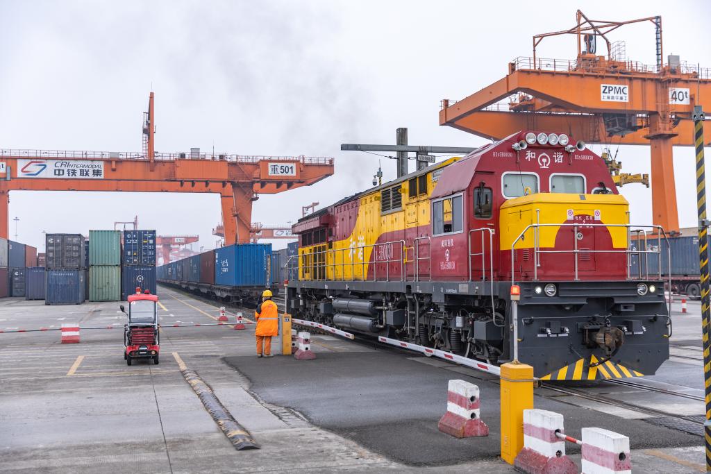 ??3月7日,一列滿載機(jī)械設(shè)備、整車(chē)及零部件等貨物的中歐班列在重慶團(tuán)結(jié)村中心站等候發(fā)車(chē)。新華社記者 黃偉 攝