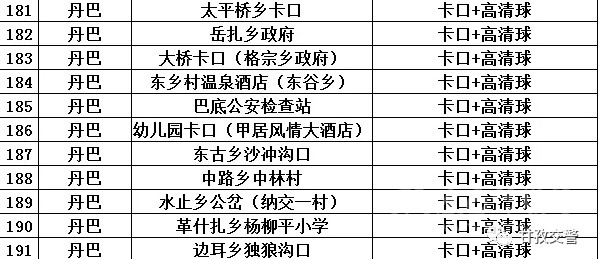 18丹巴轄區(qū)交通違法抓拍點(diǎn)位