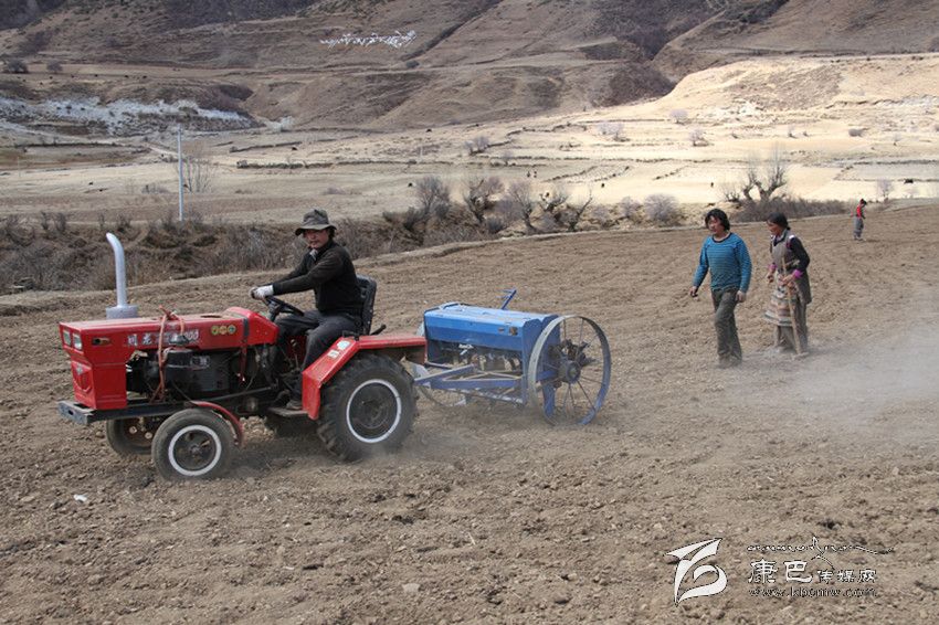 中木拉鄉(xiāng)八洛村村民真它開(kāi)著播種機(jī),一個(gè)小時(shí)就輕松搞定了他的2畝多青稞地。