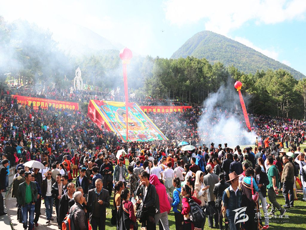 康定“四月八”跑馬山轉(zhuǎn)山會,是自藏傳佛教入康定起就有的活動,至今已有千年歷史。相傳農(nóng)歷四月初八是佛祖釋迦牟尼的誕辰日,這天跑馬山頂?shù)奈迳V杏芯艞l龍吐水為佛祖沐浴,故稱浴佛節(jié)。人們?yōu)榧o念這一吉祥日子,每逢農(nóng)歷四月初八,便從四面八方不約而同云集康定跑馬山上,載歌載舞,預祝豐收,場面壯觀,熱鬧非凡。據(jù)初步統(tǒng)計,在今年四月八當天,共有近四萬名各族群眾、游客齊聚跑馬山歡度傳統(tǒng)佳節(jié)。