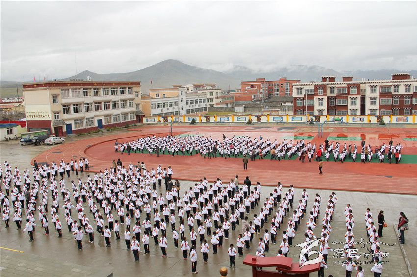 色達縣城小學生課間操。