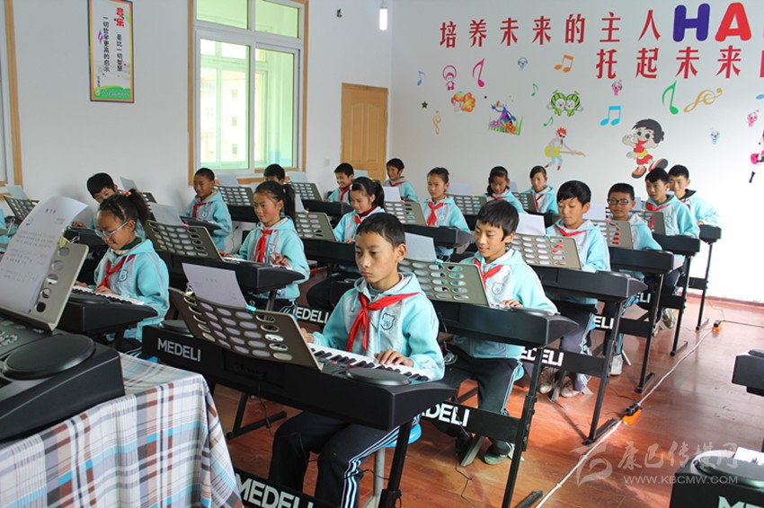 在甘孜縣城關(guān)第一完全小學的教室里,音樂教師正在教授孩子們識別五線譜,孩子們用稚嫩的雙手在電子琴鍵盤上彈奏著音樂的同時,嘴里還不斷的唱著“哆唻咪發(fā)嗦”。放學時,孩子們還沉浸在音樂的余韻中,興奮地給前來接送上課的父母們講述著課堂上的趣事。學生家長翁登不勝唏噓:“大娃娃讀一完小的時候,只有語文數(shù)學和藏文可以學,其他的課沒有專門的老師教,現(xiàn)在小女兒好安逸,還有專門的音樂老師教他們唱歌,現(xiàn)在的老師真的很厲害!”