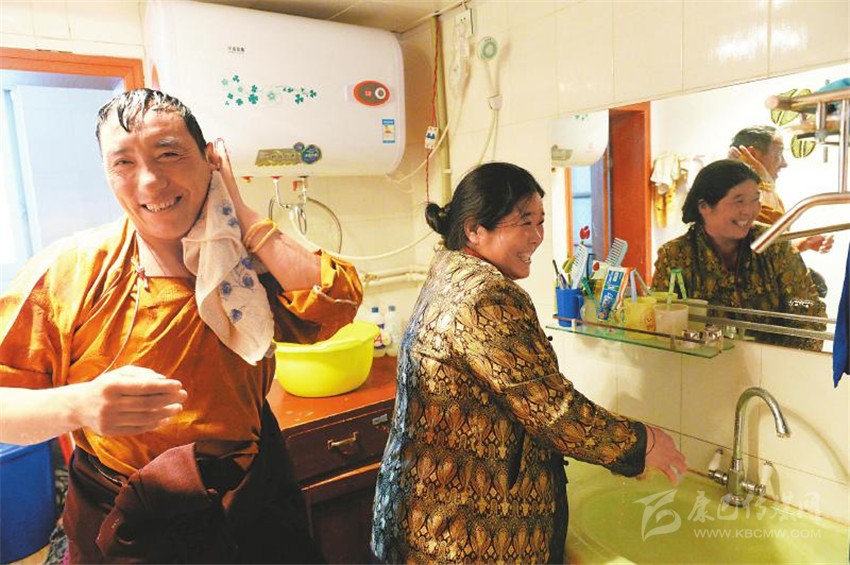 左圖:理塘縣高城鎮(zhèn)長(zhǎng)壽街的牧民丹珍(右)和丈夫洛絨鄧珠在家里用上了干凈的自來(lái)水。