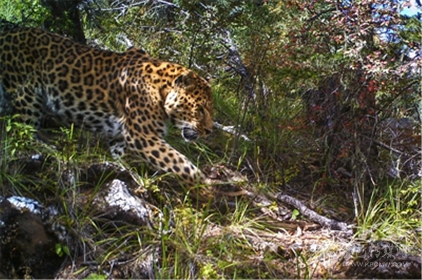 2016年11月7日5時03分,天還沒亮?xí)r,相機(jī)拍到了豹子的行蹤。