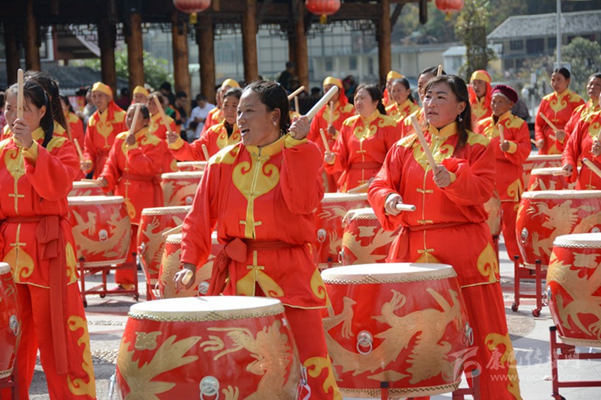本網(wǎng)訊(袁帥 文/圖)11月16日下午,由瀘定縣委宣傳部、瀘定縣文旅廣影局主辦,歷時(shí)3天的2017年貧困村威風(fēng)鑼鼓培訓(xùn)班在瀘定橋廣場(chǎng)順利結(jié)業(yè),來(lái)自該縣10個(gè)貧困村的100余名學(xué)員用激昂的鼓點(diǎn)展現(xiàn)出他們的培訓(xùn)成績(jī),贏得了現(xiàn)場(chǎng)觀眾陣陣喝彩。