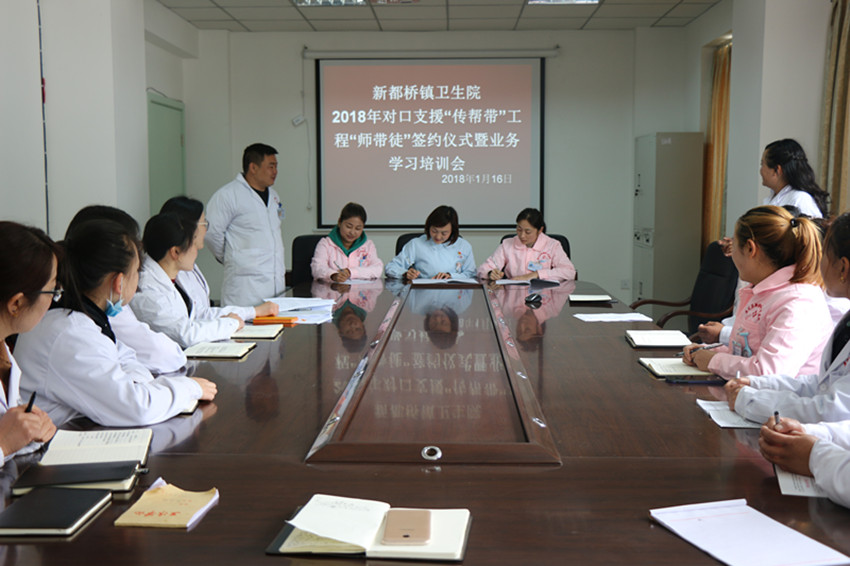 春風(fēng)沐浴、雨露滋潤(rùn);德隆情盛、高屋建瓴。為進(jìn)一步提升康定地區(qū)基層醫(yī)療衛(wèi)生機(jī)構(gòu)服務(wù)能力,打造一支有擔(dān)當(dāng)、有能力、可支撐的本土醫(yī)療衛(wèi)生人才隊(duì)伍。在對(duì)口幫扶工作中,康定市衛(wèi)計(jì)局高度重視本土人才培養(yǎng),將“傳幫帶”工作作為了重點(diǎn)。2018年1月8日,康定市疾控中心與都江堰市疾控中心通過(guò)座談商榷了“傳幫帶”幫扶方案,達(dá)成了共識(shí),下一步將通過(guò)對(duì)口幫扶,互訪(fǎng)交流、業(yè)務(wù)培訓(xùn),信息溝通共享等方式,在綜合管理、等級(jí)評(píng)審、人員能力建設(shè)、實(shí)驗(yàn)室檢驗(yàn)檢測(cè)能力建設(shè)、應(yīng)急處置能力建設(shè)等方面進(jìn)行重點(diǎn)“傳幫帶”。與此同時(shí),康定市第二人民醫(yī)院舉辦了對(duì)口支援“傳幫帶”工程“師帶徒”簽約儀式暨工作推進(jìn)會(huì)議。會(huì)上各位專(zhuān)家與選中的學(xué)員進(jìn)行現(xiàn)場(chǎng)簽約,雙方約定在今后的一年中,專(zhuān)家們通過(guò)理論培訓(xùn)、教學(xué)手術(shù)(操作)、教學(xué)查房、疑難病例討論、常見(jiàn)病多發(fā)病診治、開(kāi)展新技術(shù)新業(yè)務(wù)等方面進(jìn)行指導(dǎo)、幫扶、協(xié)作,明確了各自的目標(biāo)任務(wù)和工作職責(zé)。