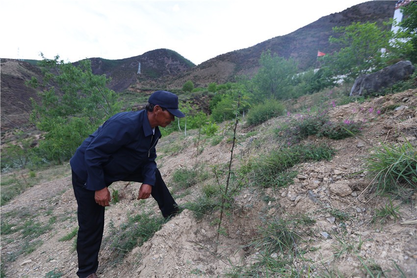 6月22日黃昏時(shí)分,因放心不下今年才種植的花椒樹(shù),鄉(xiāng)城縣漁洼仲村支部書(shū)記阿魯占爭(zhēng)爬上山坡查看樹(shù)苗的長(zhǎng)勢(shì)情況。站在山坡上,看著身后成片的果樹(shù)上裹著青衣的李子、蘋果、核桃隨風(fēng)搖曳,“看來(lái)今年又是一個(gè)水果豐收年”,阿魯占爭(zhēng)高興地說(shuō)。