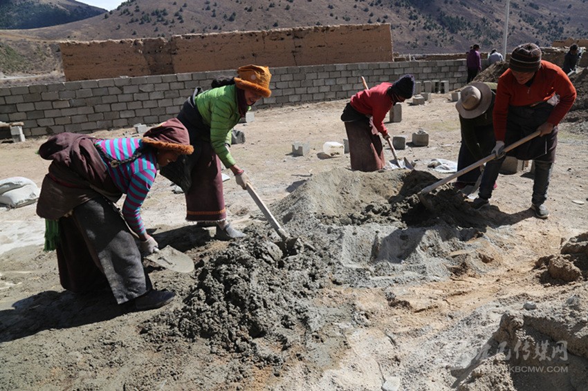 在工程實(shí)施中,全組的村民相互幫助,齊心協(xié)力建新房?!白蛱齑蠹?guī)臀野逊孔有薜冒桶瓦m適、漂漂亮亮的。我也來(lái)幫四郎曲西建房。這樣你幫我,我?guī)湍悖銕退?,要不了多久,我們這里家家戶戶都會(huì)很漂亮?!闭谠鹤永飻嚢杌覞{的村民格絨多登微笑著說。