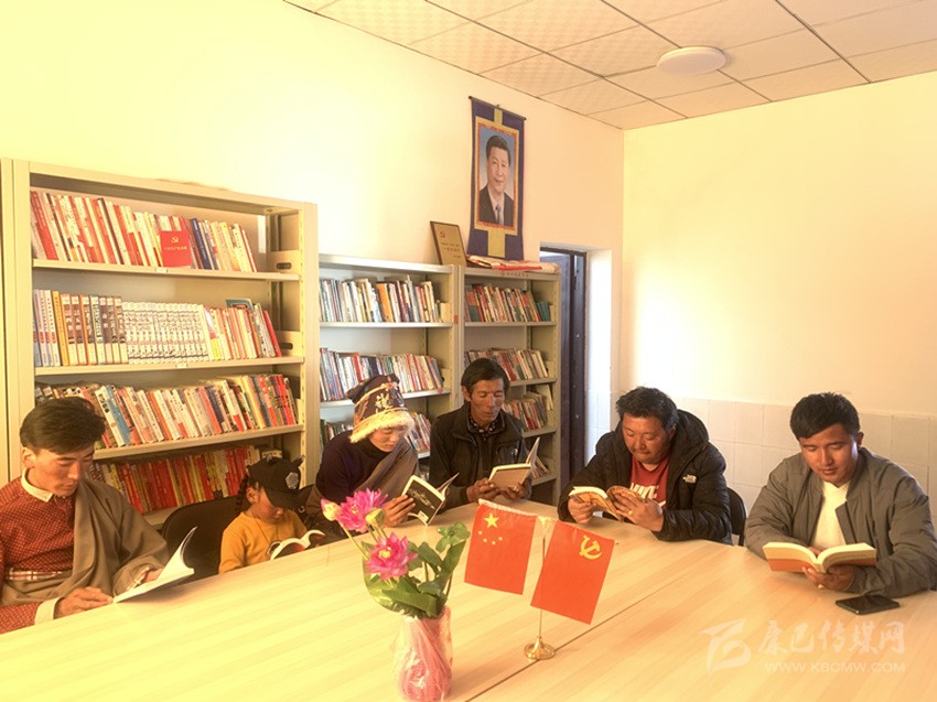 “平時(shí)只要有空,我們就到這里來(lái)聚會(huì),看看書(shū)、聊聊天,有時(shí)村里會(huì)組織大家集中收看宣傳黨委政府政策的宣傳片,讓我們能及時(shí)了解國(guó)家方針政策?!?月13日午飯后,色達(dá)縣大則鄉(xiāng)厚門(mén)村的文化活動(dòng)室,和往常一樣,又陸陸續(xù)續(xù)迎來(lái)三三兩兩的村民們。一樓的圖書(shū)室,幾位村民正在安靜地看書(shū),有漢語(yǔ)的,也有藏語(yǔ)的,他們身后兩面的書(shū)架上,收藏了上萬(wàn)本各類書(shū)籍,其中藏語(yǔ)書(shū)籍占了一半以上,還有一些光碟,都是歷次中央、省、州重大會(huì)議的宣講內(nèi)容。在二樓的會(huì)客室,49歲的村民擁巴和鄉(xiāng)親們正熱烈地聊著今年脫貧攻堅(jiān)的形勢(shì)。