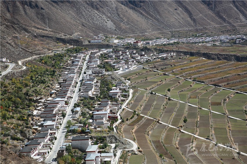 作為處于高山峽谷間的得榮縣鄉(xiāng)村,村民大多生活在懸崖峭壁上,或地質(zhì)災(zāi)害嚴(yán)重的地區(qū),生存條件極差,為了徹底斬除窮根,縣委、縣政府把開發(fā)的目光投向了地勢(shì)相對(duì)平坦的因都?jí)巍?1月10日,記者再訪因都?jí)巍3醵囊蚨級(jí)侮柟鉅N爛,溫暖如春。一棟棟民居、一層層梯田橫臥在青山綠水間,蔚為壯觀。農(nóng)閑季節(jié),村民們愜意地坐在自家庭院的亭子里,喝著酥油茶、品嘗著藏橘、梨子、蘋果和核桃。村道兩旁的藏橘碩果滿枝頭,寬敞的街道、靚麗的民居,一幅壯美的富春山居圖在金沙江畔徐徐展開。
