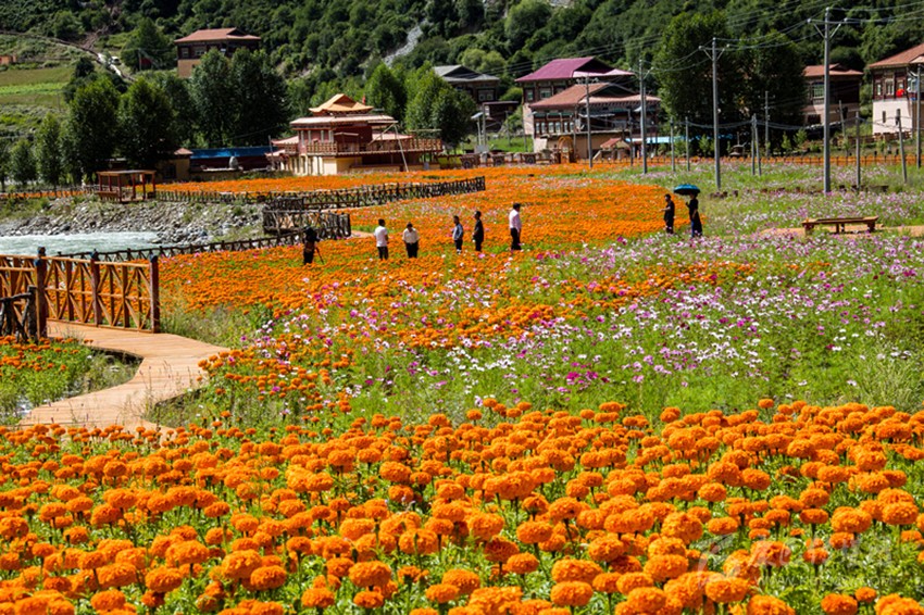 白玉縣麻絨鄉(xiāng)德來村萬壽菊種植基地給當?shù)卮迕駧碇赂幌M?本網(wǎng)資料庫圖