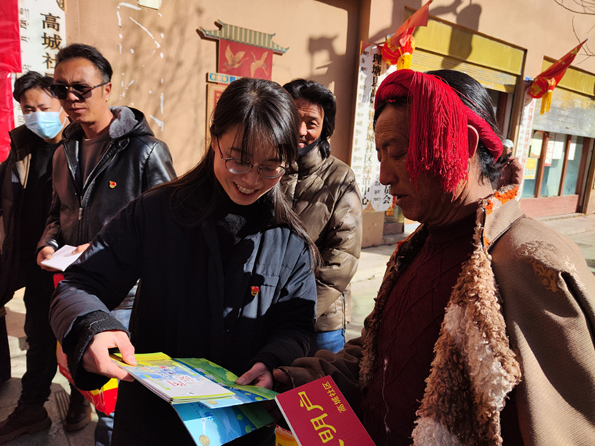 理塘縣委宣傳部黨支部準備了內容豐富、通俗易懂的宣傳資料,“黨的二十大精神”宣傳折頁、《講文明樹新風》原創(chuàng)藏漢雙語公益漫畫、《文明城市宣傳手冊》、“網(wǎng)絡安全與網(wǎng)絡文明”宣傳冊、社會主義核心價值觀宣傳海報、防震減災宣傳單等一系列資料整整齊齊擺放在咨詢臺上,供過往群眾取閱。