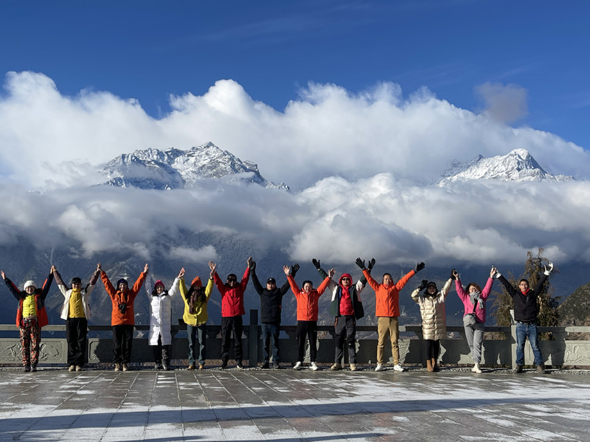 雪山觀景臺上的游客。