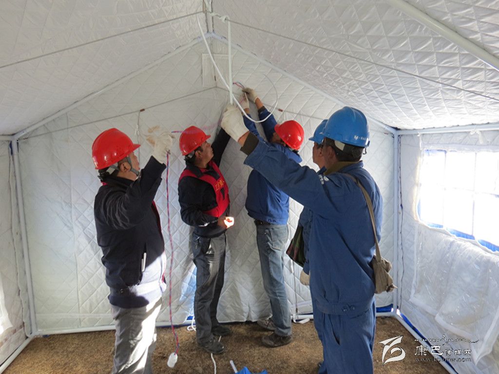 奪拉二村有4個變壓器臺區(qū),其中2個臺區(qū)為人員較多的木雅祖慶學(xué)校,地震使學(xué)校住宿樓變?yōu)槲7?,全校?000名學(xué)生轉(zhuǎn)移至學(xué)校空地上的安置點。為了讓安置點內(nèi)的受災(zāi)師生和應(yīng)急指揮中心盡快用上電,黨員突擊搶險小分隊不僅要在安置點迅速安裝應(yīng)急照明設(shè)施,同時還要從圍墻和學(xué)校食堂的樓頂上重新布放近3段2公里長的臨時電源線。學(xué)校圍墻因地震而搖搖欲墜,稍微用點力,墻、磚塊或水泥就會掉下來,面臨這一難題,公司黨總支沉著應(yīng)對,迅速組織塔公供電所與新都橋供電所的黨員干部趕往震中,同時安排其余供電所的黨員干部迅速增援。先期到達(dá)的救援人員在余震不斷發(fā)生的情況下,對受損供電設(shè)備及線路進(jìn)行了緊急處理;在后期人員趕到后,公司黨總支迅速研究制定工作方案,科學(xué)分工:第一組黨員突擊搶險隊負(fù)責(zé)隱患排查,第二組黨員突擊搶險隊負(fù)責(zé)電線布放,第三組黨員突擊搶險隊負(fù)責(zé)救災(zāi)帳篷的照明安裝。在三個小組隊員的共同努力下,用近三個小時的時間就解決了應(yīng)急指揮中心、醫(yī)療隊和臨時安置點的照明安裝這一難題。